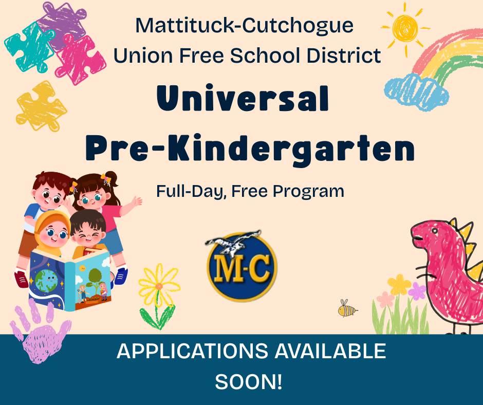 Mattituck-Cutchogue School District, in cooperation with Just Kids, is pleased to provide a Universal Pre-Kindergarten Program at the Cutchogue East Elementary School for the 2026-2027 school year....